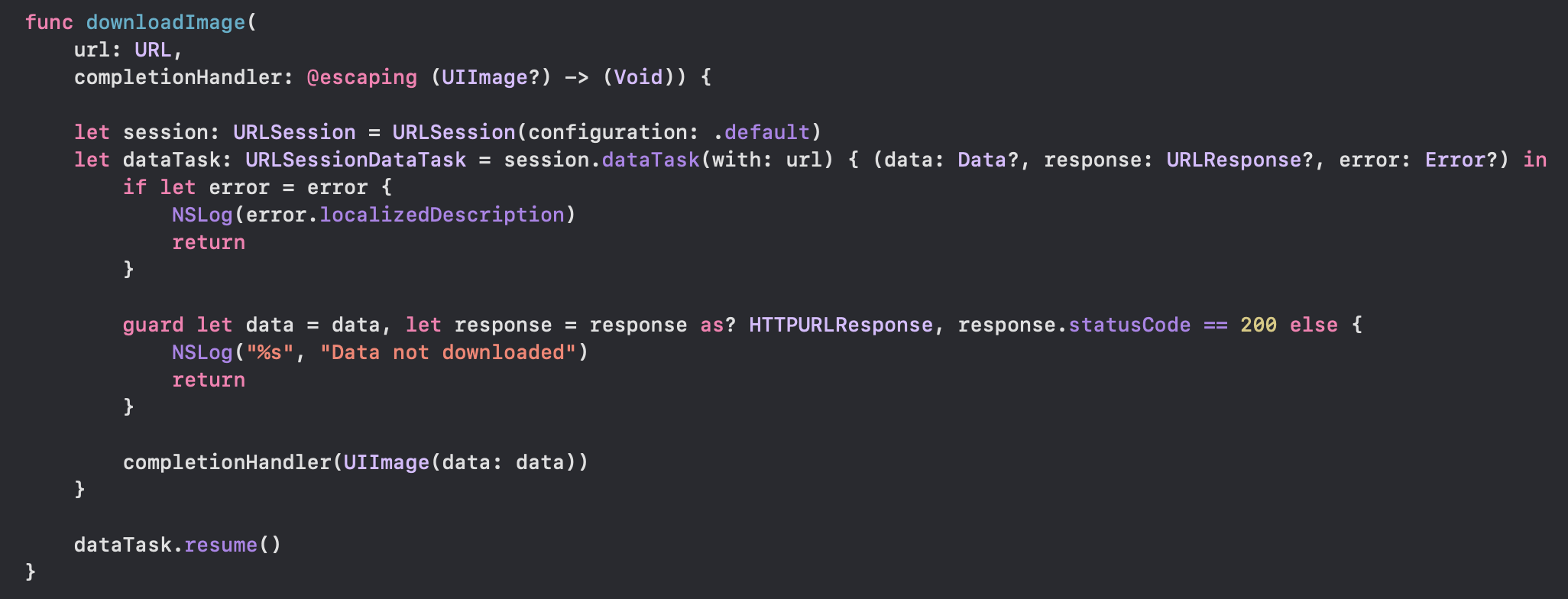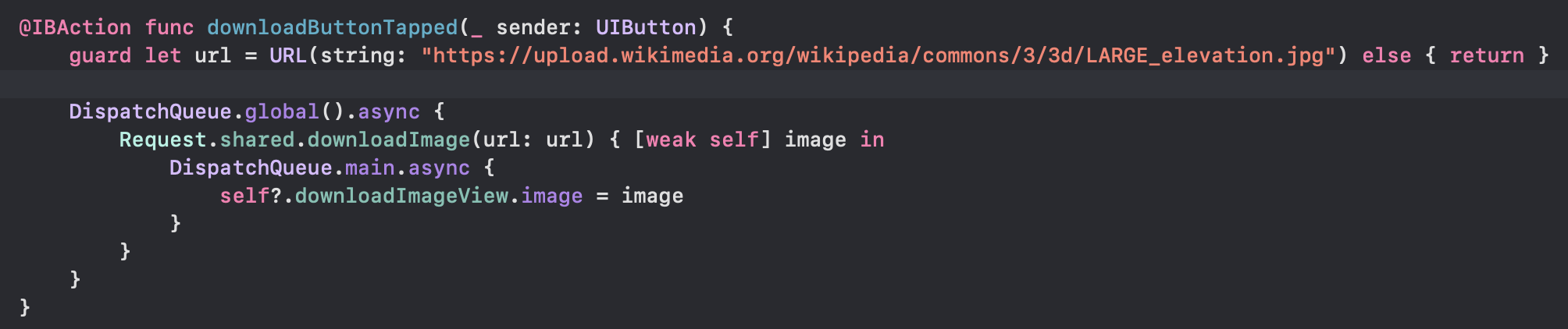 GCD, Closure Callbacks 사용한 이미지 비동기 처리 코드는 다음과 같습니다.