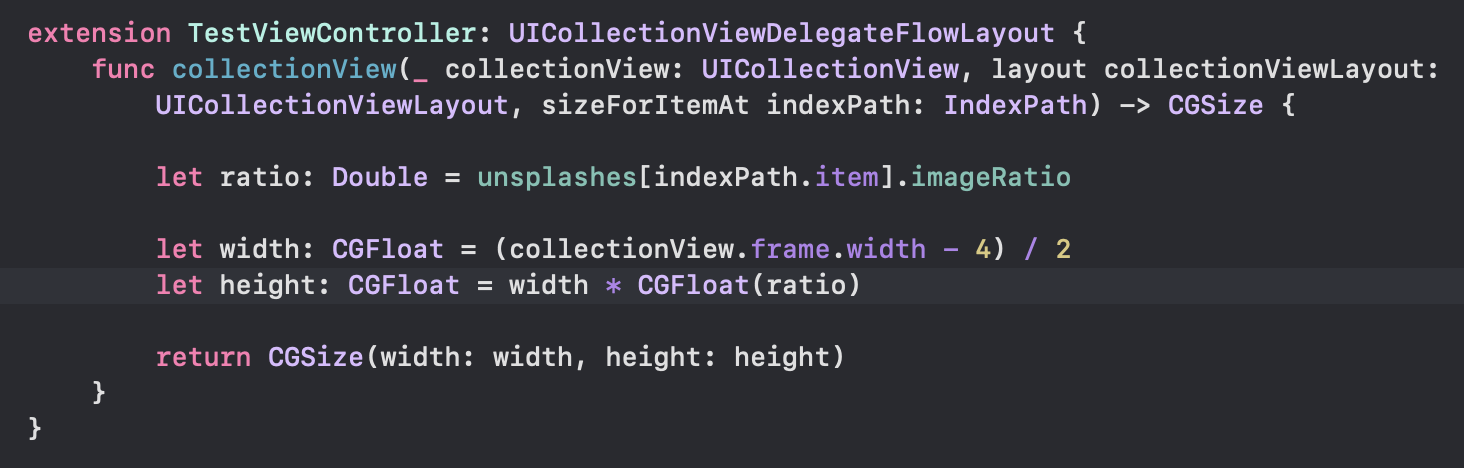 하지만 ItemForSize 를 통해 각 Cell 마다 다른 크기를 지정했을 때 문제점이 발생합니다.