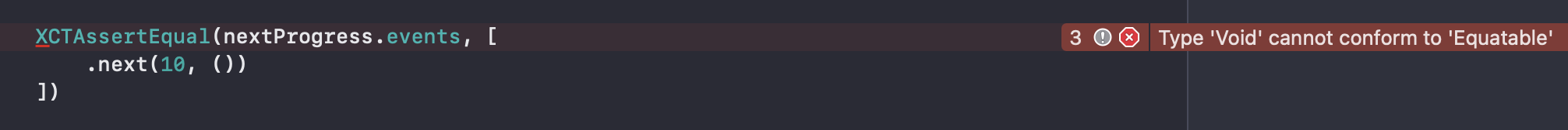 Bool Observable 은 문제 없이 테스트 가능하지만 여기서 Void Observable 에서 문제점이 발생하게 됩니다.