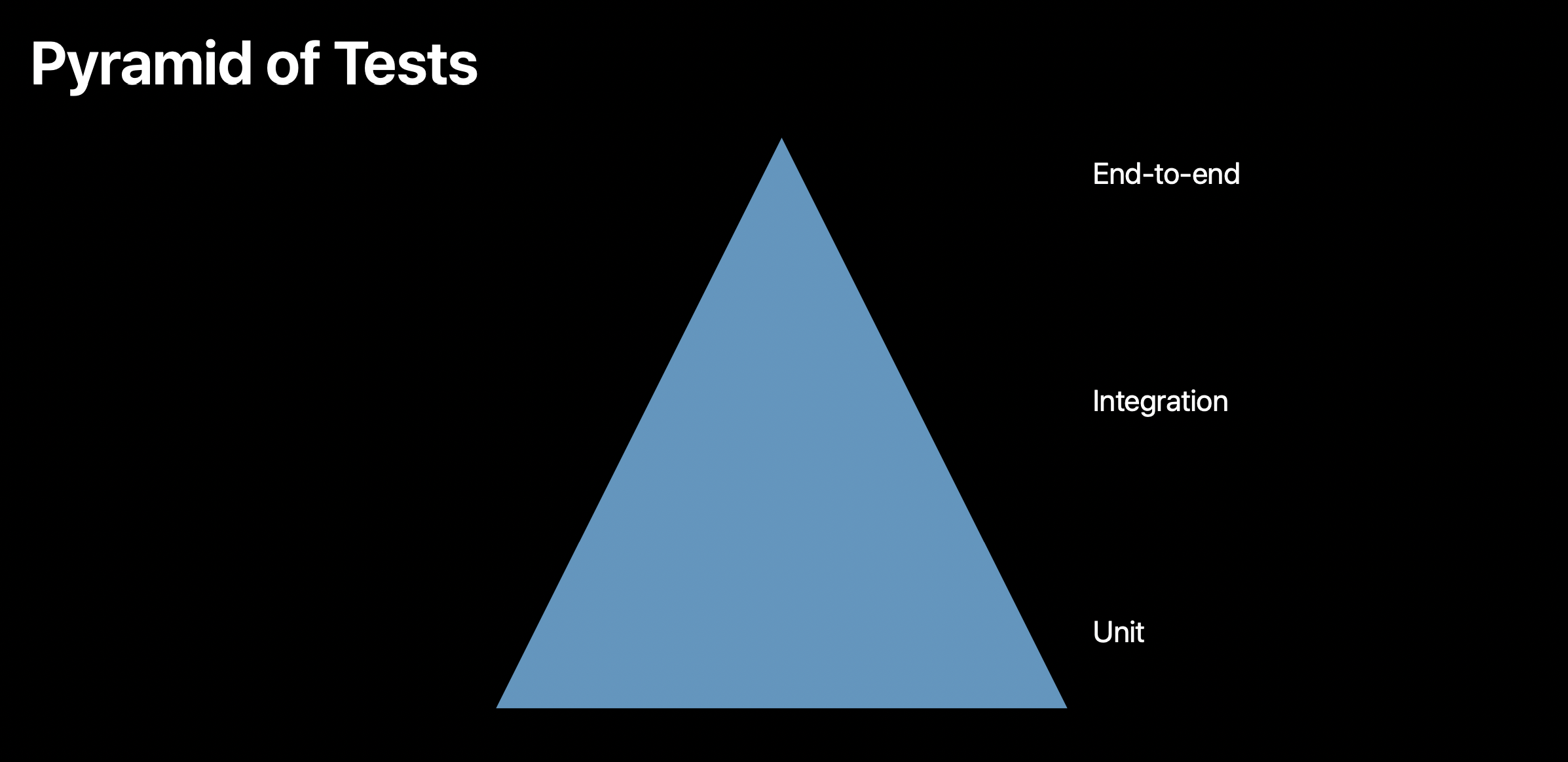 애플 WWDC 세션 자료를 참고하면 UITest 가 테스트 피라미드에 가장 높은 곳에 위치한 것을 볼 수 있습니다. 이는 Unit 테스트에 비해서 개수가 적고 변경되기 쉬우며, 통합 테스트에 가장 적합하다는 것을 말합니다.