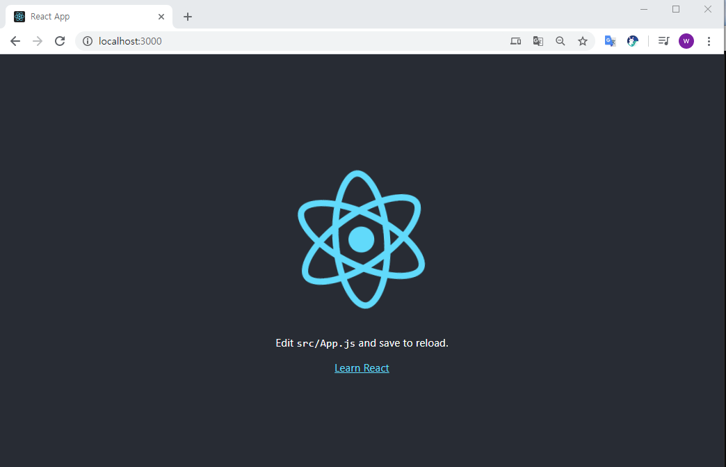 yarn start 명령어를 입력하면 자동으로 테스트용 웹 서버가 시작되고, 브라우저에서 해당 화면이 출력됩니다.