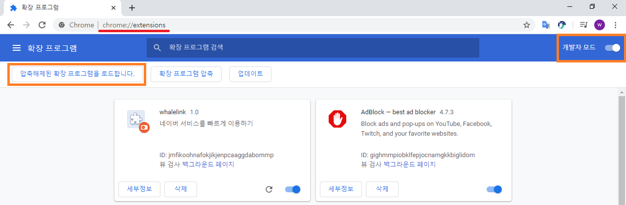2. 압축해제된 확장 프로그램을 로드하면 됩니다. ( 위에서 만든 build 폴더를 선택하면 됩니다. )